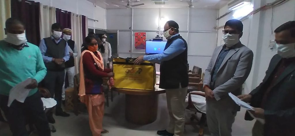 मिशन विजय न्यूज अंबेडकरनगर 3 दिसंबर 2020। सूक्ष्म ,लघु एवं मध्यम उद्यम तथा निर्यात प्रोत्साहन विभाग द्वारा स्वरोजगापरक योजनाओं के अंतर्गत माननीय मुख्यमंत्री उत्तर प्रदेश सरकार द्वारा ऑनलाइन स्वरोजगार संगम का आयोजन किया गया। जिसमें प्रदेश के 5000 लाभार्थियों को प्रशिक्षण के उपरांत टूल किट का वितरण किया गया ।इसके अंतर्गत आत्मनिर्भर उत्तर प्रदेश रोजगार अभियान, प्रधानमंत्री रोजगार सृजन कार्यक्रम, मुख्यमंत्री युवा स्वरोजगार योजना एवं एक जनपद एक उत्पाद और अन्य योजनाओं के ऋण का वितरण किया गया। जनपद अंबेडकर नगर में एक जनपद एक उत्पाद योजना अंतर्गत दर्जी कार्य हेतु रुचि गौतम ,गीता, नीलम देवी ,शर्मिला ,आरती गौतम को सिलाई मशीन स्वीकृत कराया गया। वहीं मुख्यमंत्री युवा स्वरोजगार योजना अंतर्गत लौह कला उद्योग जितेंद्र कुमार को 10 लाख ऋण धनराशि, प्रधानमंत्री रोजगार सृजन कार्यक्रम अंतर्गत नमकीन उद्योग के लिए विजय मोदनवाल को 2 लाख ऋण धनराशि, मुख्यमंत्री युवा स्वरोजगार योजना अंतर्गत ऑटो पार्ट्स सर्विस हेतु सावन मिश्रा को 5 लाख ऋण धनराशि, प्रधानमंत्री मुद्रा लोन योजना अंतर्गत बिल्डिंग मैटेरियल हेतु आकाश जायसवाल को 2 लाख धनराशि आत्मनिर्भर उत्तर प्रदेश रोजगार अभियान अंतर्गत जनरल स्टोर हेतु जितेन्द्र कुमार को 1.10 लाख ऋण धनराशि जिलाधिकारी राकेश कुमार मिश्र द्वारा प्रदान किया गया। इस दौरान एनआईसी में जिलाधिकारी राकेश कुमार मिश्र, मुख्य विकास अधिकारी घनश्याम मीणा ,अपर जिलाधिकारी डॉ पंकज कुमार वर्मा, एलडीएम आशीष, उद्योग महाप्रबंधक आशुतोष पाठक एवं चयनित लाभार्थी उपस्थित रहे।